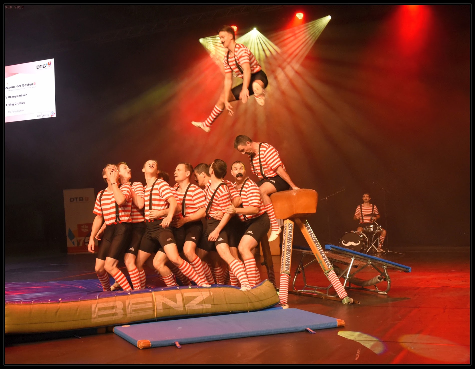 Als eine von 16 Showgruppen in Deutschland wurden die Grufties vom Deutschen Turnerbund ausgezeichnet. Die Obergrombacher erhielten vom DTB die Auszeichnung „Das Besondere Etwas“ und dürfen nun das Prädikat „ausgezeichnet“ tragen – eine erhebliche Verbesserung im Vergleich zum Auftritt beim Landesentscheid. Mit dieser Auszeichnung dürfen die Obergrombacher als Showact bei der Abendgala auftreten, bei der die besten Showgruppen Deutschlands ihre Darbietungen präsentieren. Und nicht nur das: Durch das Alleinstellungsmerkmal ihres Auftritts wurden die Obergrombacher dem Gala-Publikum als krönender Abschluss des Abends vorgestellt und sorgten für ausgelassene Stimmung.