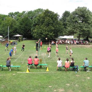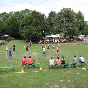 Fünf Mannschaften traten ab 09 Uhr morgens beim Volleyballturnier gegeneinander an. Abwechselnd auf dem Beachfeld und dem Rasenfeld spielten drei Herrenmannschaften,nämlich die Wild Boys, die Turner und eine Mannschaft der SEW, außerdem das „dreamteam“ als Mixed-Mannschaft und die Damenmannschaft „shizzledizzle“ . Das SEW-Team konnte sich den Sieg holen.
